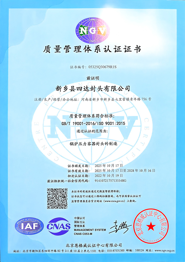 封头认证证书